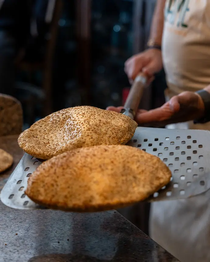La Kaake est un pain recouvert de graines de sésame avec plus de mâche et de croustillant que le pain libanais classique.